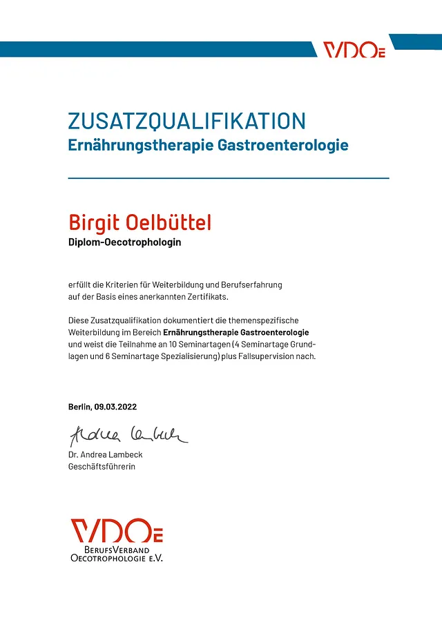 Zusatzqualifikation Ernährungstherapie Gastroenterologie