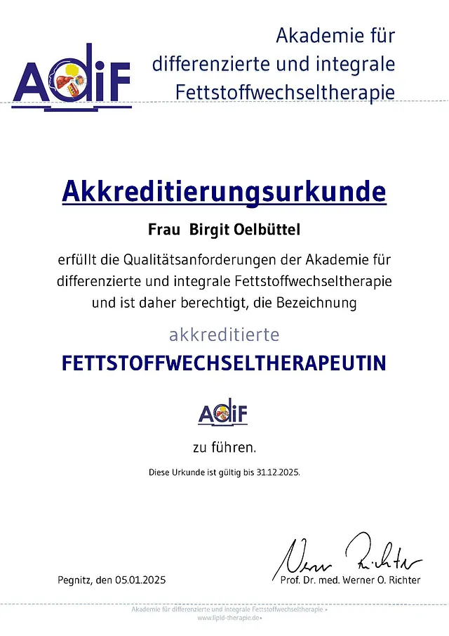Akkreditierte Fettstoffwechseltherapeutin (AdiF)