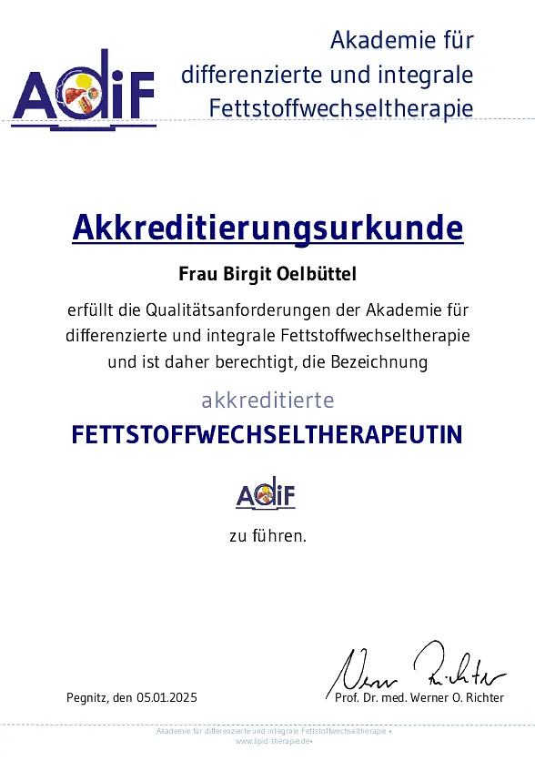 Akkreditierte Fettstoffwechseltherapeutin (AdiF)